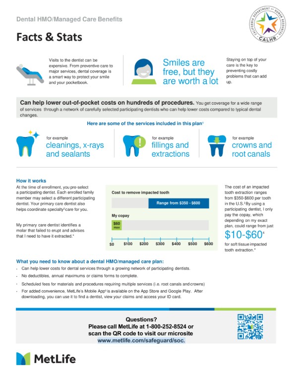 Learn more about MetLife DHMO Dental Plan in their Facts & Stats flyer.