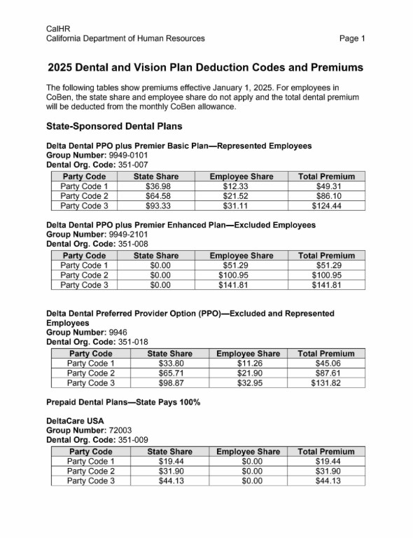 Find 2025 Dental and Vision Plan Deduction Codes and Premiums here.