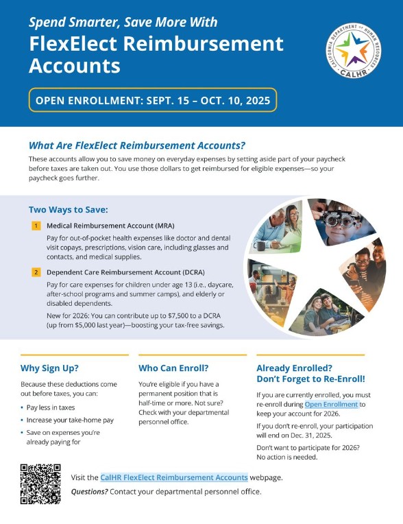 Learn more about the State of California FlexElect program including reimbursement accounts and cash options.